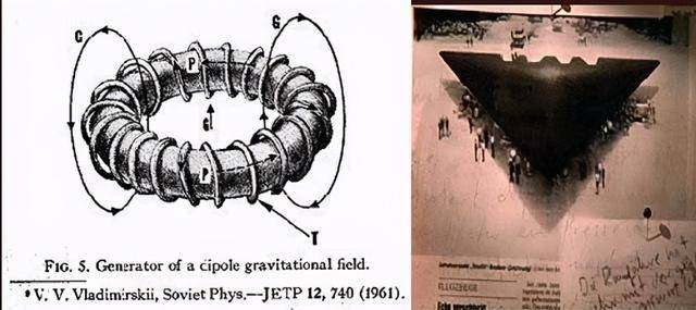 但更离谱的还要数这款飞行器的动力装置,直接跨越了常规航空器的工质发动机,改用一种被称为“磁场中断器”的等离子加速环,通过产生磁旋涡场以抵消地球引力,进而为飞行器提供垂直起降和高速飞行能力。
