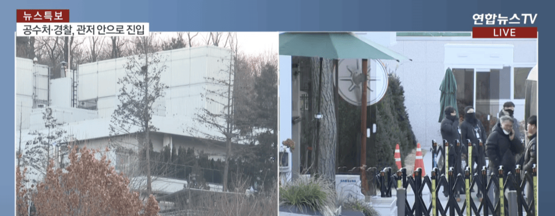 当天,韩国高级公职人员犯罪调查处(公调处)调查人员进入总统官邸,逮捕尹锡悦。