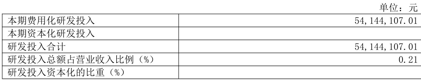 2024年全年,公司研发投入金额为5414.41万元,同比增长39.17%;研发投入占营业收入比例为0.21%,相比上年同期上升0.05个百分点。此外,公司全年研发投入资本化率为0%。