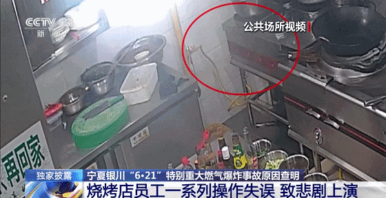 如果这时立即关阀断气,马上开窗通风,及时关闭火源,悲剧仍然可以避免。然而,现场没有人去这么做。慌乱中,大家只是关掉烧烤炉后就走出烧烤区,没有人提示热菜区正在烧菜的员工及时关火。