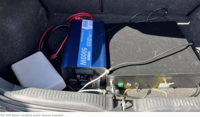 今年8月,新西兰一19岁男子被捕——此前警方首次发现一台“ 短信轰炸机”(SMS Blaster)正在运作,向毫无防备的受害者发送了成千上万条疑似诈骗短信。