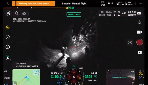 在一次山地救援行动中,美国犹他州瓦萨奇山脉韦伯县治安官搜救队使用大疆无人机开展救援。视频截图